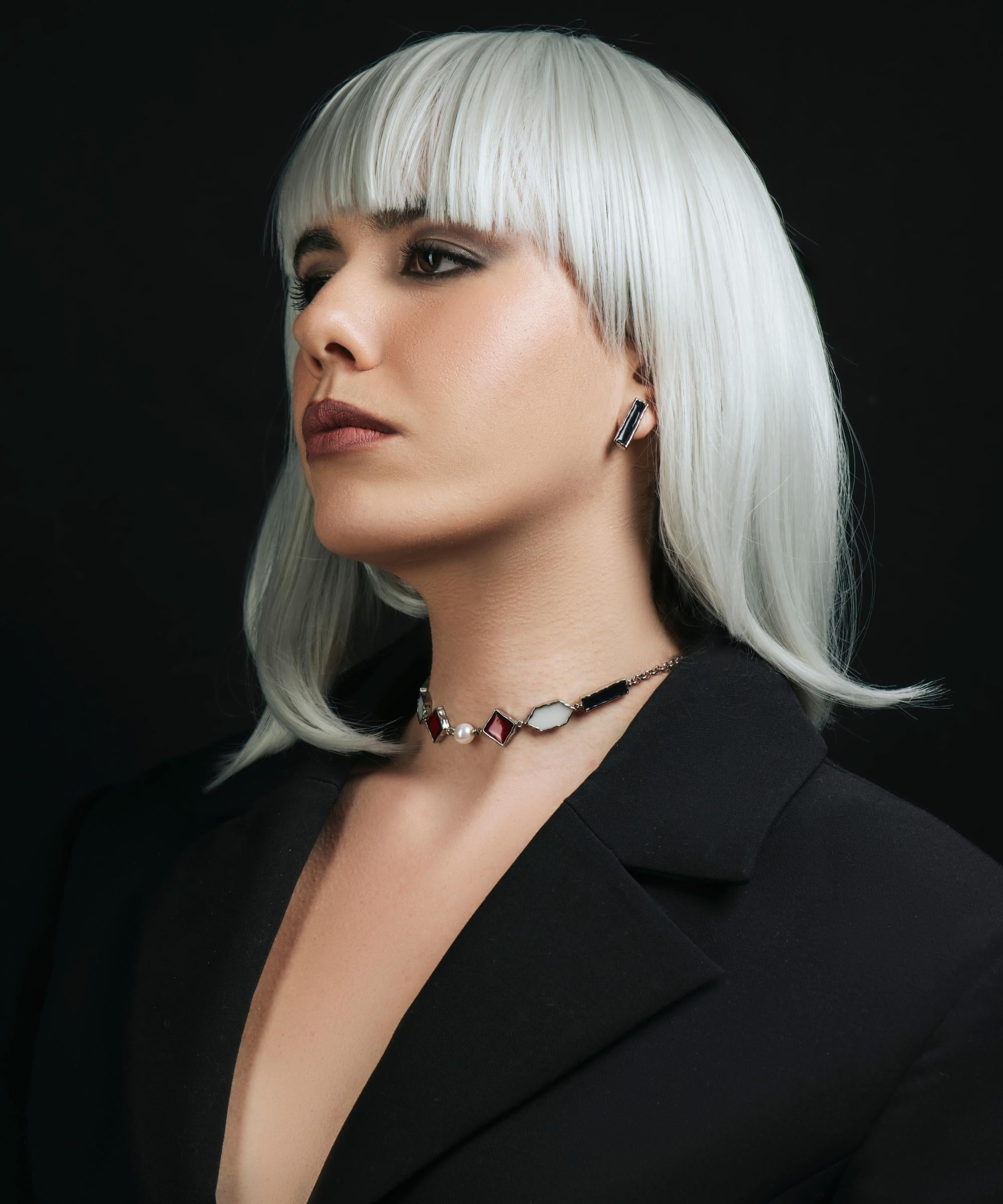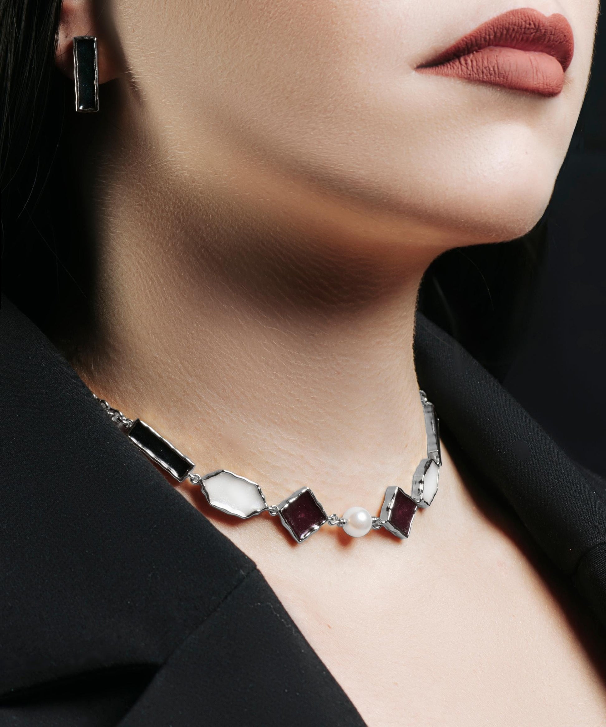 Il retro della collana invece è rifinito con una superficie silver lucidata, pensata per offrire una doppia possibilità di utilizzo: il lato colorato per un look più vivace, oppure quello silver per un tocco più minimal.