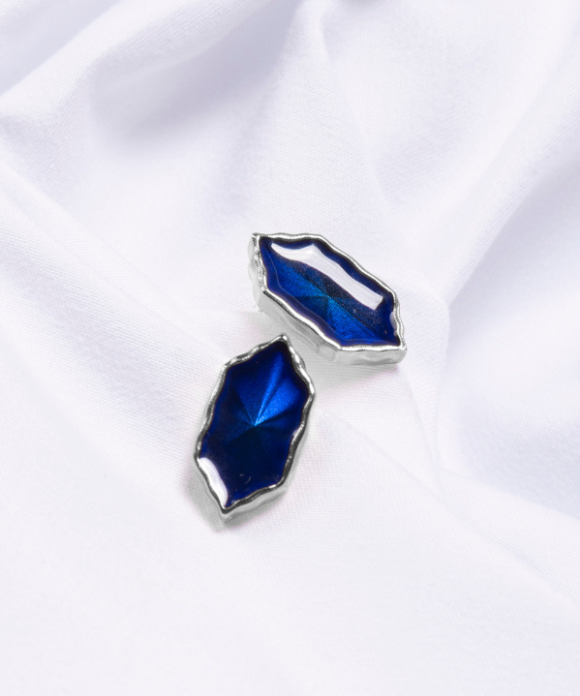 Gli orecchini Amal Blu sono eleganti e leggeri e sono formati da una base rettangolare ondulata che successivamente viene smaltata a mano.