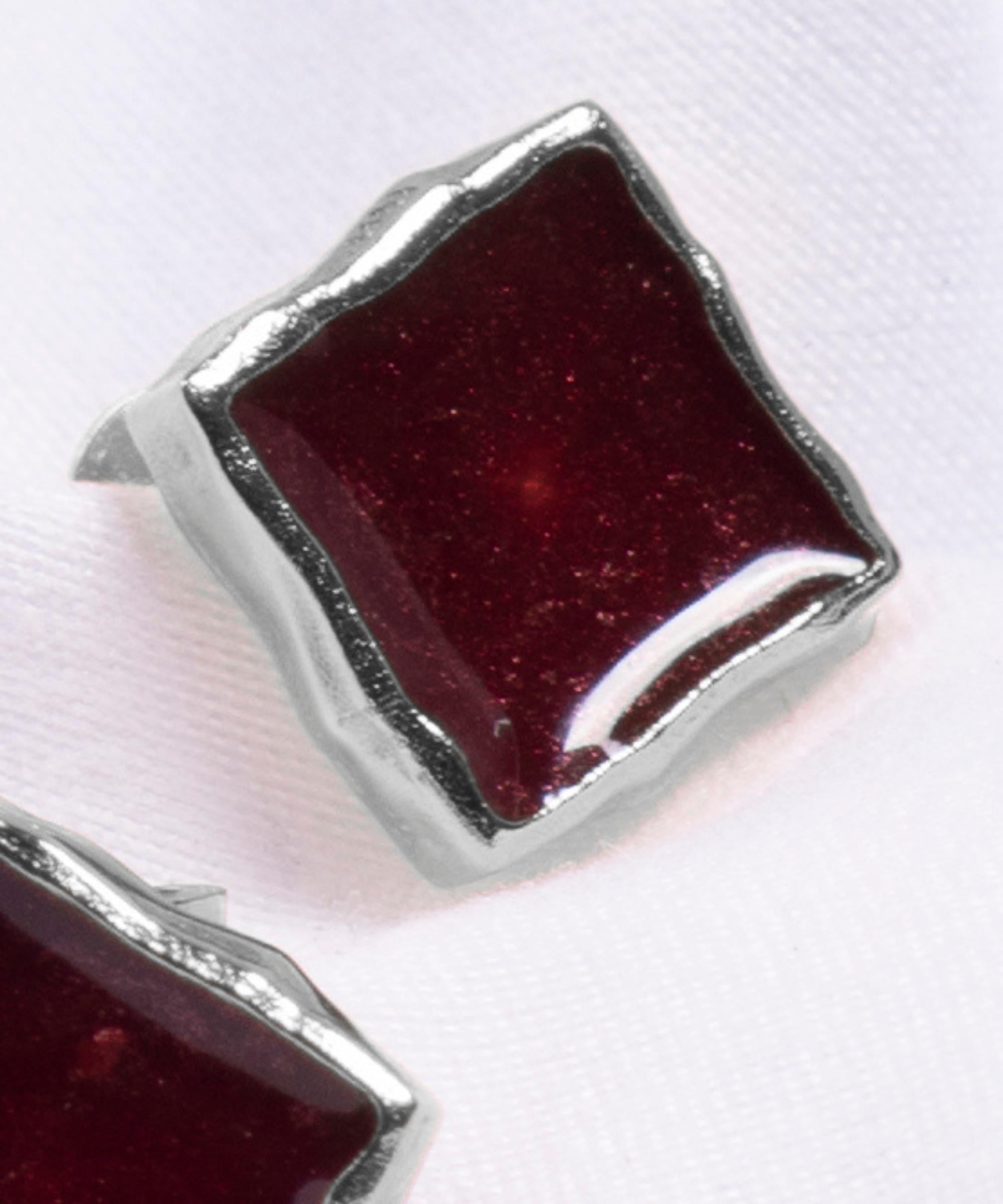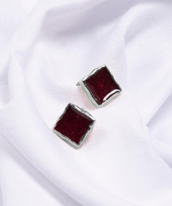 Gli orecchini Amal Bordeaux sono eleganti e leggeri e sono formati da una base rettangolare ondulata che successivamente viene smaltata a mano.