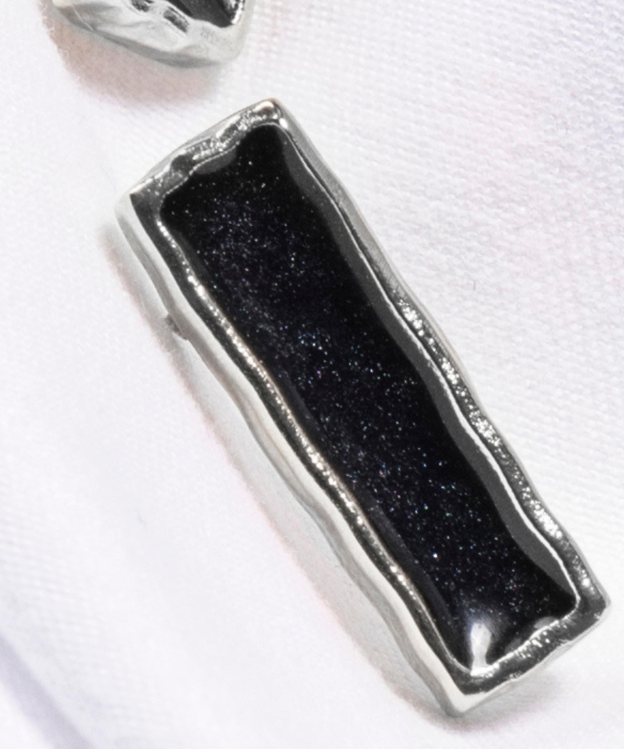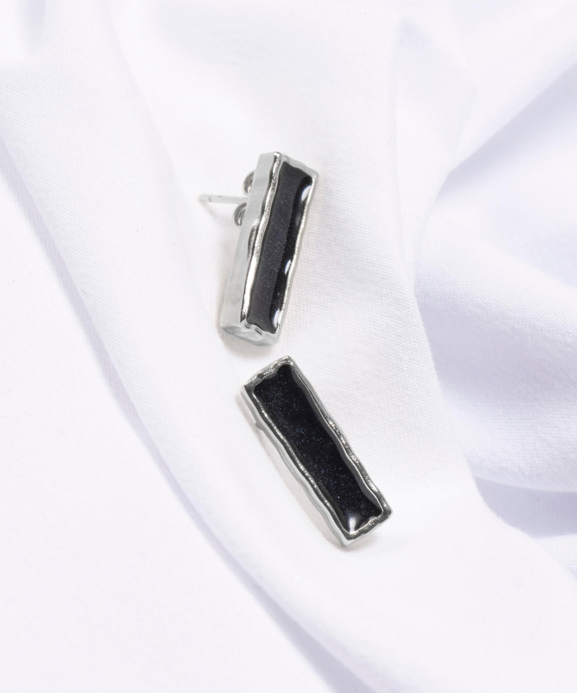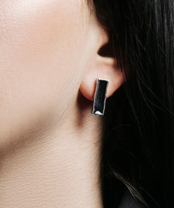 Gli orecchini Amal Nero sono eleganti e leggeri e sono formati da una base rettangolare ondulata che successivamente viene smaltata a mano.